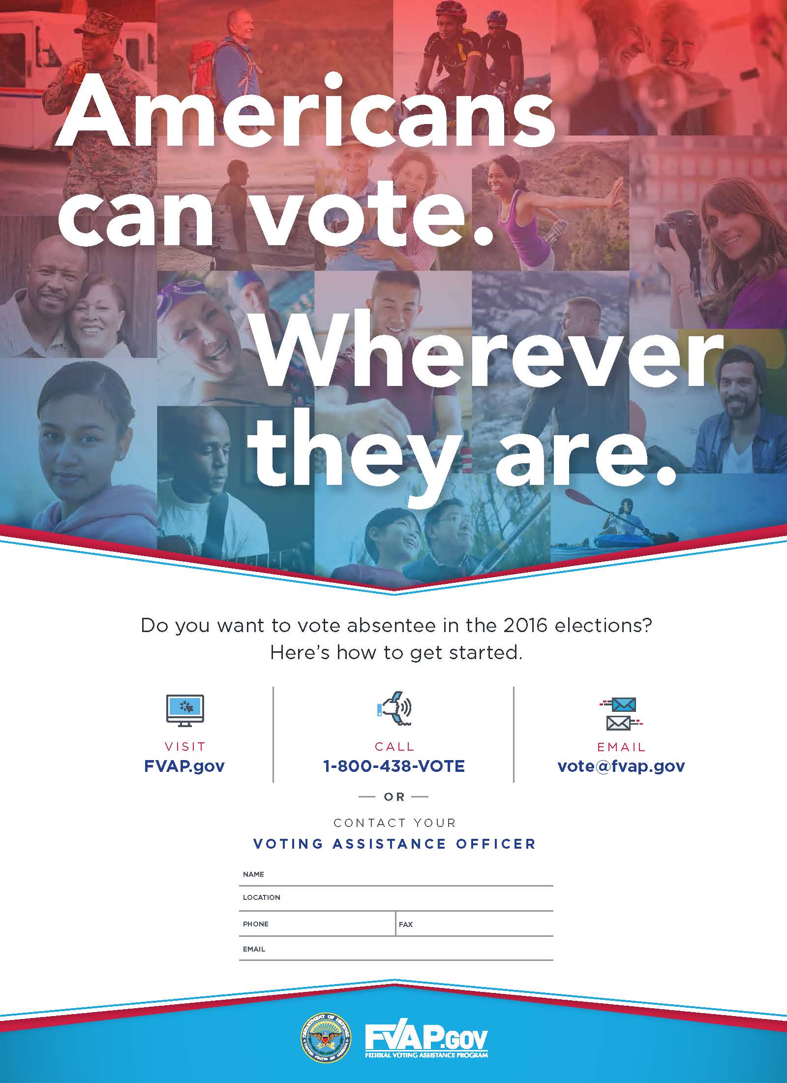 Brochures, banners, and wallet cards can be ordered by contacting FVAP directly at vote@fvap.gov.